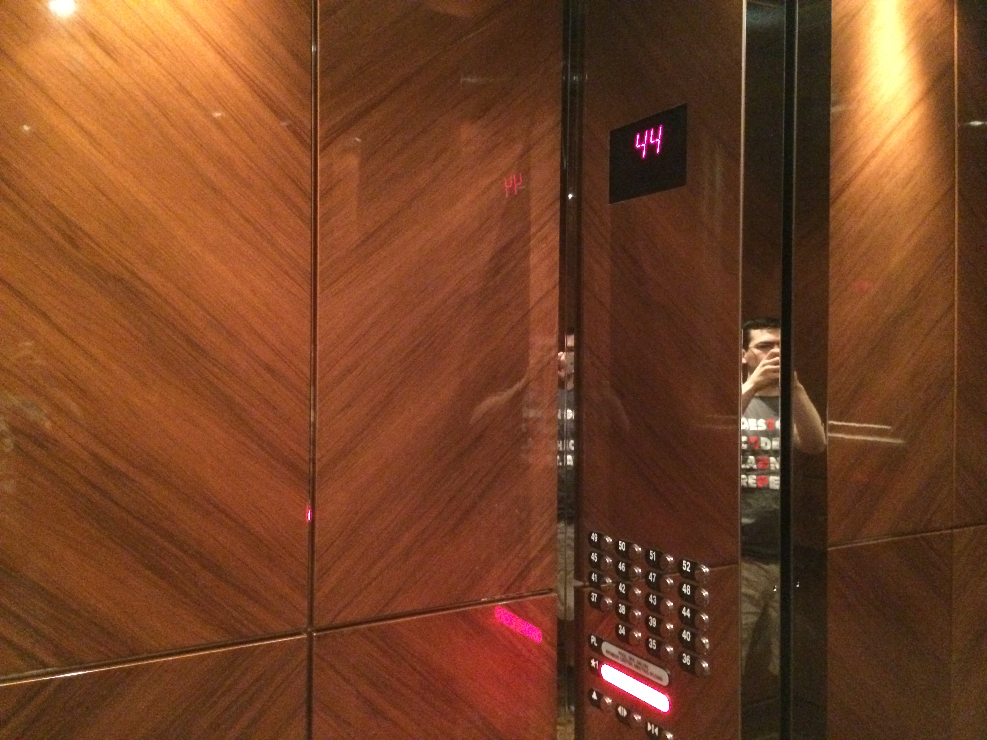 We didn’t do a whole lot today, so I’ll take this opportunity to tell you about the elevators here at the hotel. Perhaps this is normal for buildings with 50+ stories, but their are 3 different groups of elevators, each servicing a different set of rooms. This is very handy for me since I’m on floor 50 and would spend hours traveling up and down in the elevator otherwise. The interesting thing about this elevator, though, is that it travels at mach speed when traveling past the levels it doesn’t service. I’ve actually had more issues with the pressure changes in the elevator than I had with the airplane.